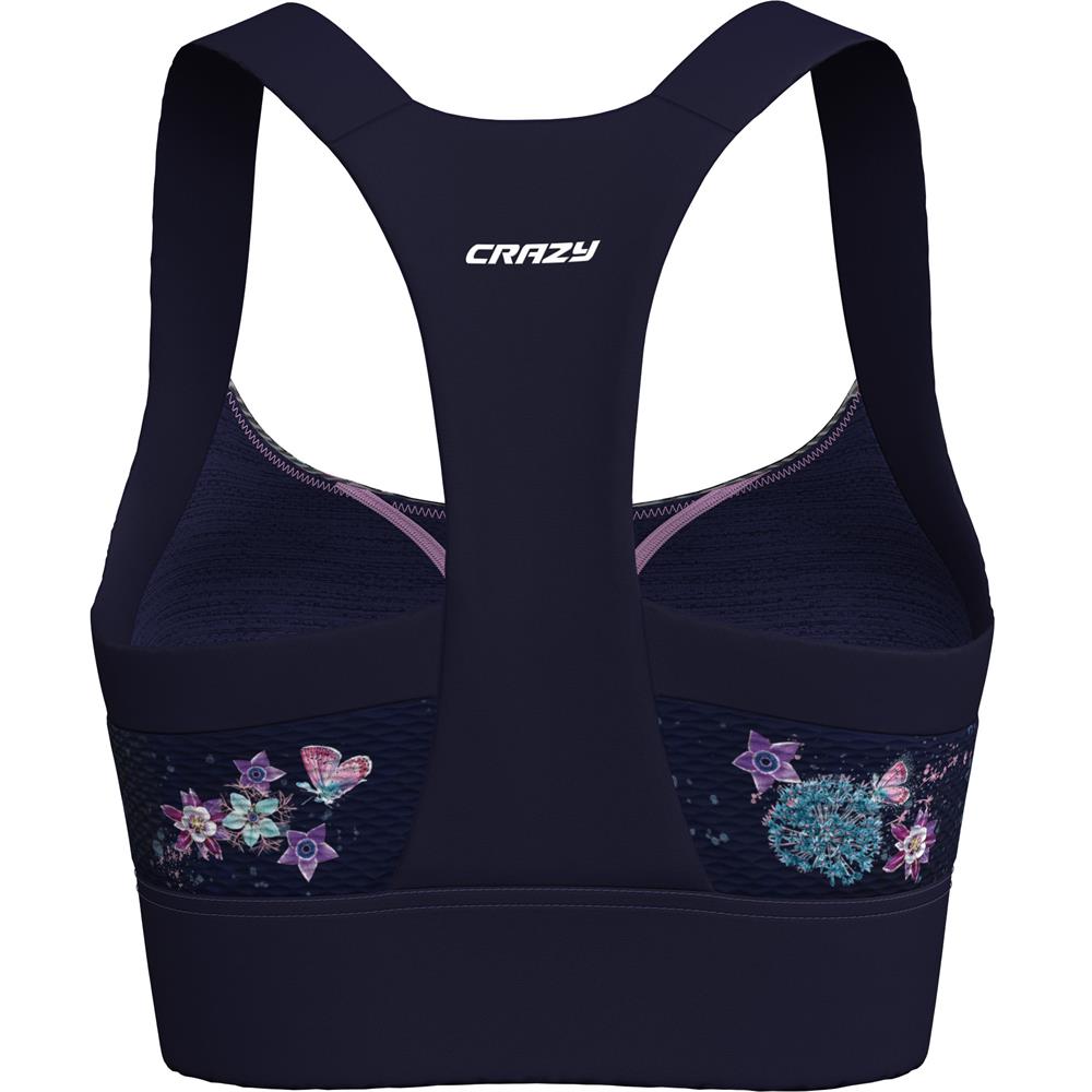 Breathable sports bra with a comfortable fit. It stands out thanks to its colorful patterns in perfect Crazy style. The Lightning Bra is designed for trail running but adapts perfectly to all outdoor activities during warmer days. It is made of lightweight stretch microfiber, with a quick-drying anti-odor treatment. The high band improves stability and prevents chafing. The cup paddings are removable, contoured, and offer high support.